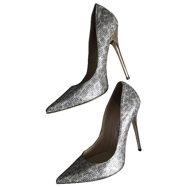 Pre-Owned Jimmy Choo Anouk Silver Glitter Heels | ModeSens