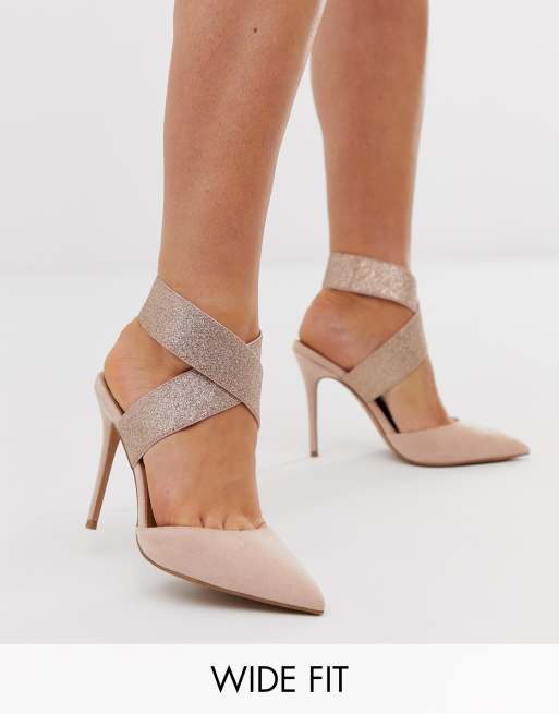 ASOS DESIGN Wide Fit Payback elastic high heels in beige ...