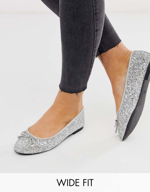 ASOS DESIGN Wide Fit Loretta bow ballet flats in glitter ...